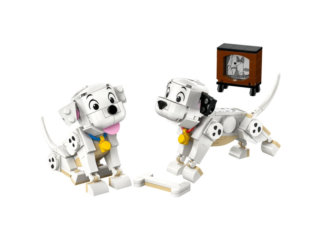 Děti si můžou hrát se 2 roztomilými štěňaty z Disney filmu 101 dalmatinů nebo si model LEGO® | Disney můžou vystavit.