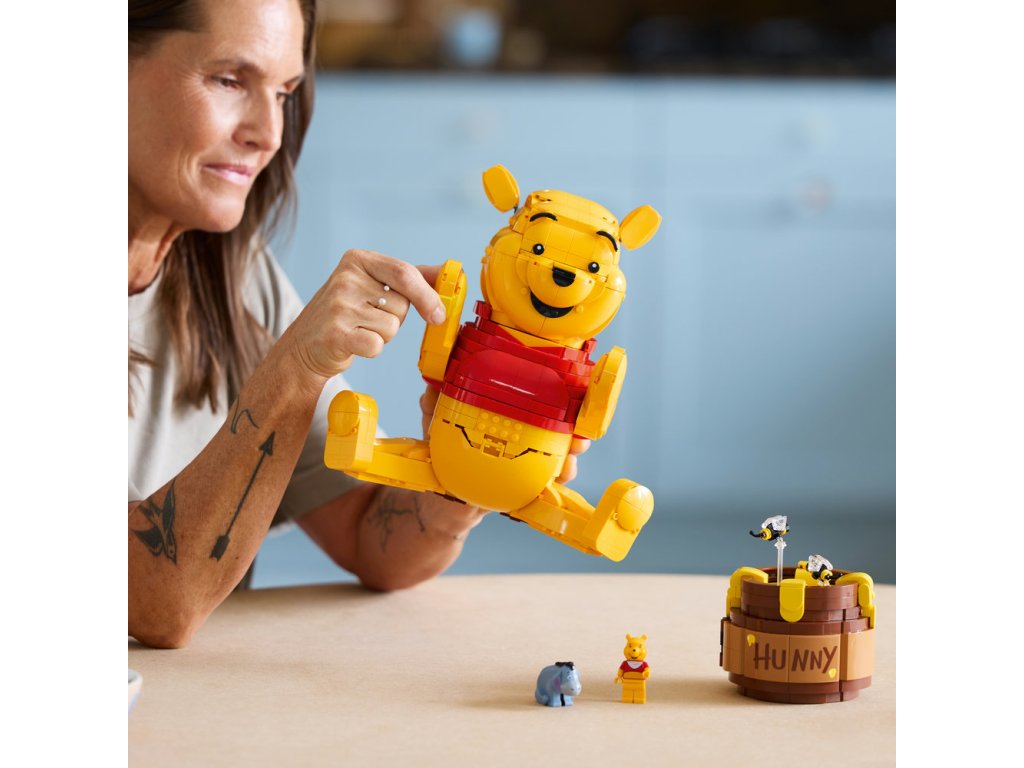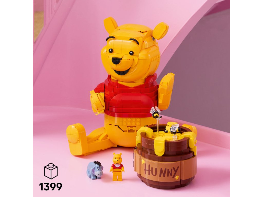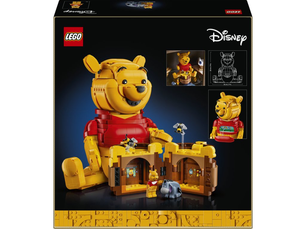• ROZMĚRY – Stavebnice LEGO® ǀ Disney se skládá z 1 399 dílků a obsahuje sestavitelný model Medvídka Pú z klasického filmu Disney, který měří přes 23 cm na výšku