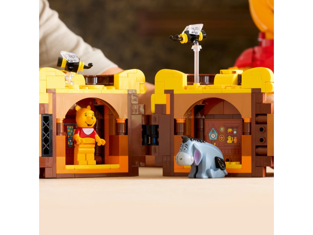 • PŘIPOMEŇTE SI KRÁSNÉ VZPOMÍNKY – Stavebnice obsahuje nádobu plnou medu se 2 sestavitelnými včelkami, kterou lze otevřít a odhalit 2 místnosti s postavičkami Medvídka Pú a Ijáčka LEGO® ǀ Disney, a spoustu dalšího