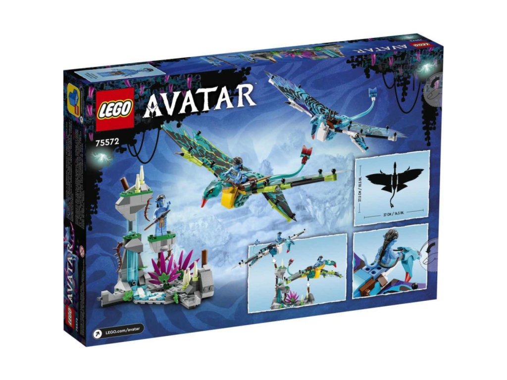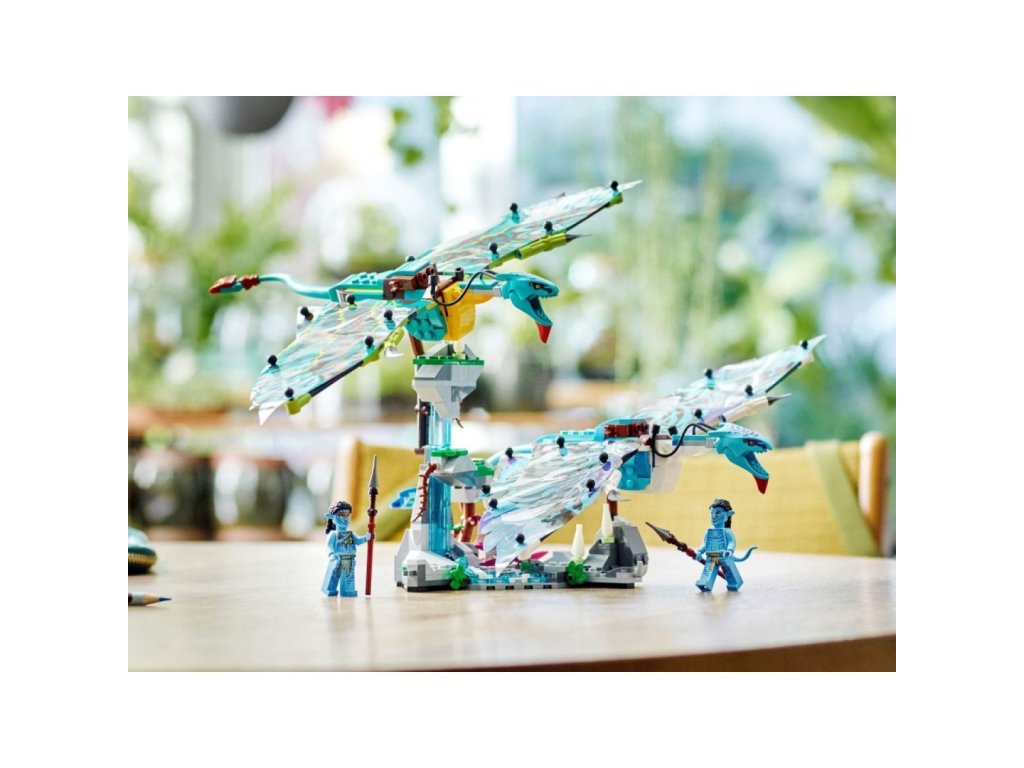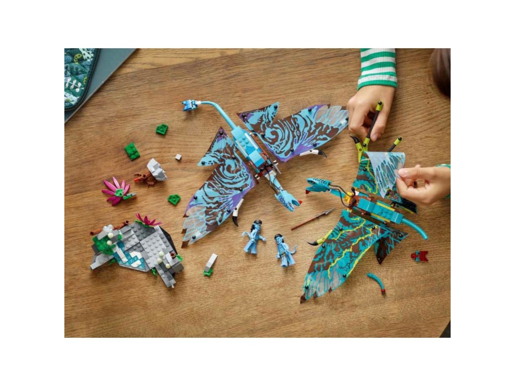 • Co najdete v krabici – Poutavá stavebnice LEGO® obsahuje minifigurky Jakea Sullyho a Neytiri, 2 sestavitelné figurky banshee s polohovatelnými fóliovými křídly, a navíc sestavitelný model hor s dílky, které svítí ve tmě