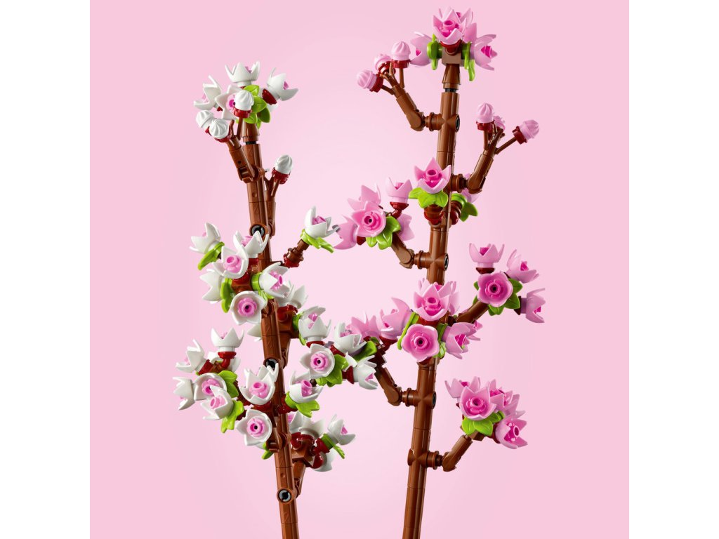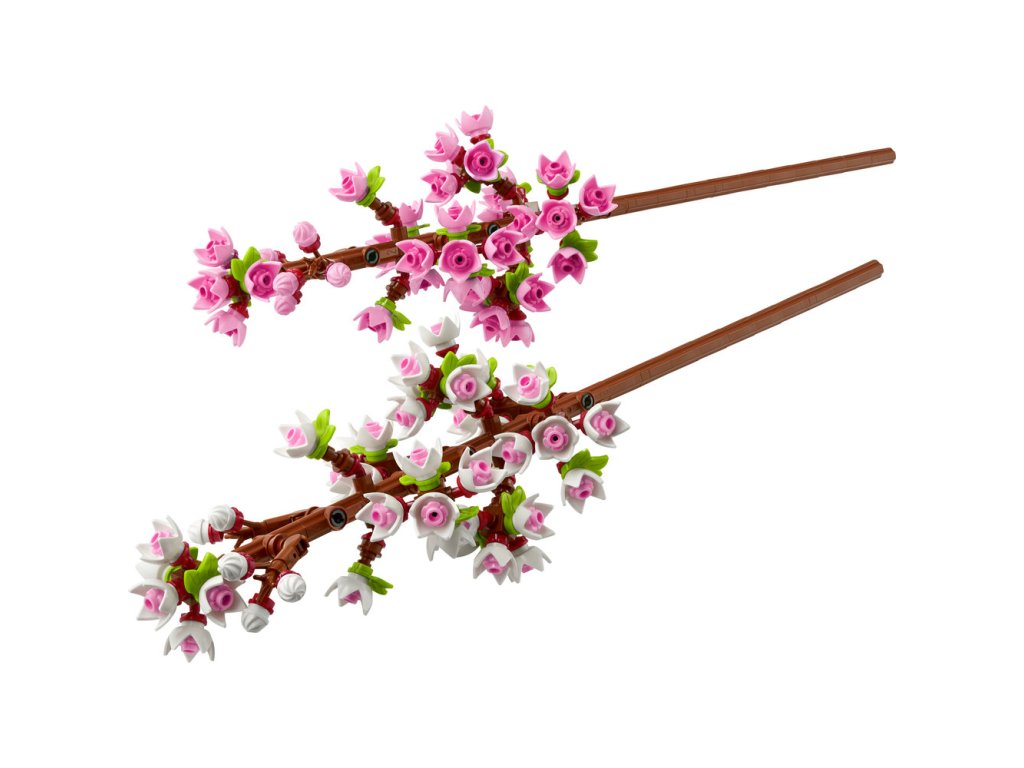 - Jarní barvy – Součástí této stavebnice LEGO® jsou 2 třešňové větvičky pokryté pastelově růžovými a bílými poupaty