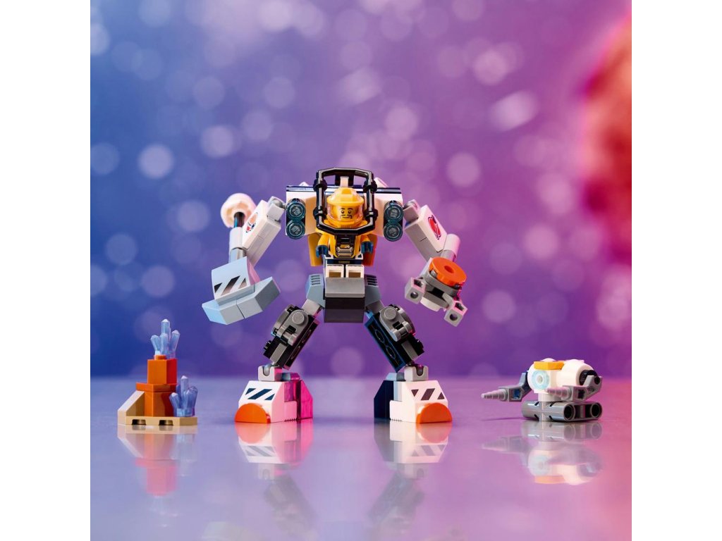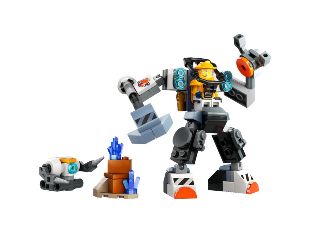 Obsahuje figurku konstrukčního robota a prostředí planety
