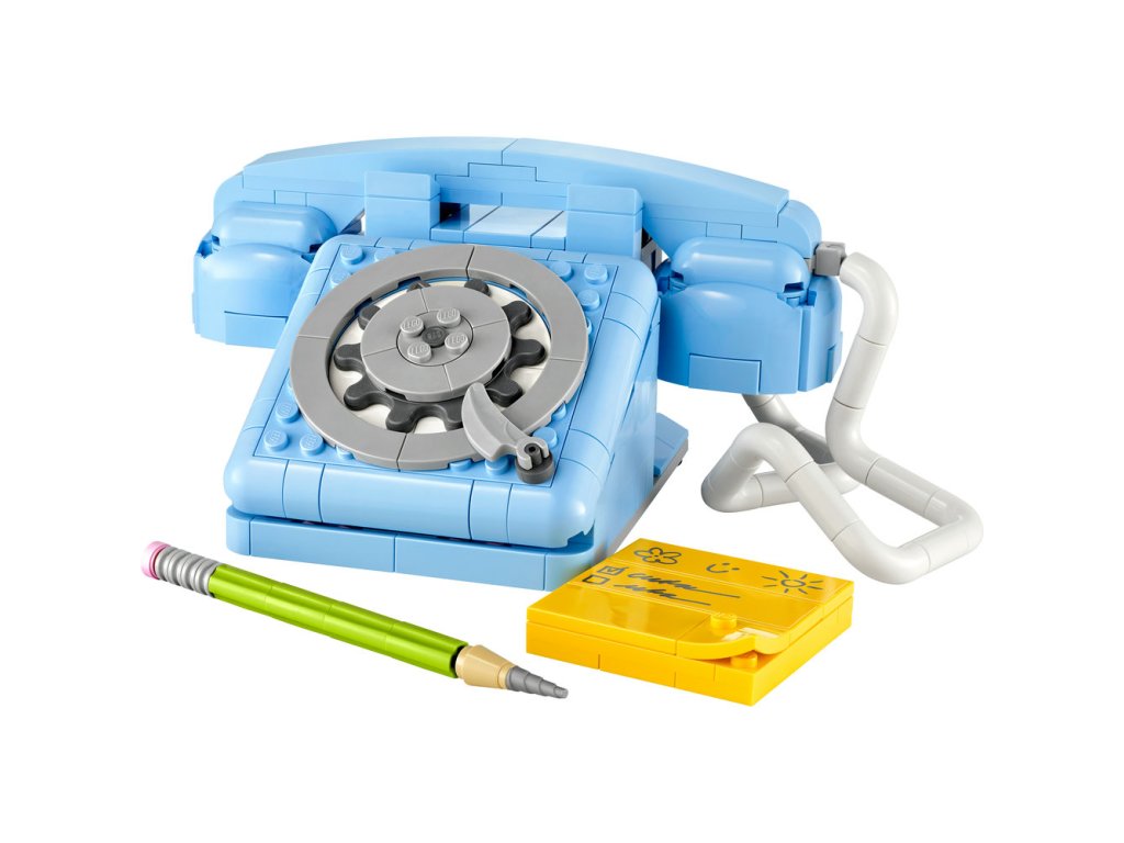 • Stavebnice se skládá z 383 dílků a model vytáčecího telefonu z 60. let měří přes 15 cm na šířku