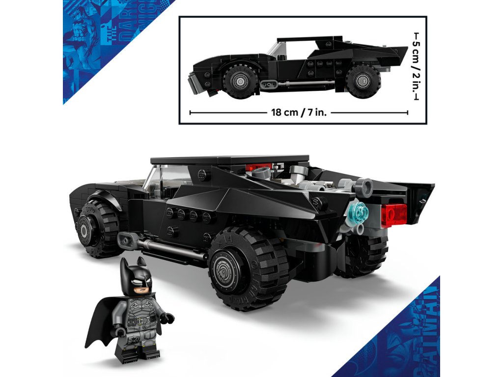 • ROZMĚRY – 330dílná stavebnice LEGO® DC Batman™: Batman™: Batmobil měří přes 5 cm na výšku, 18 cm na délku a 8 cm na šířku