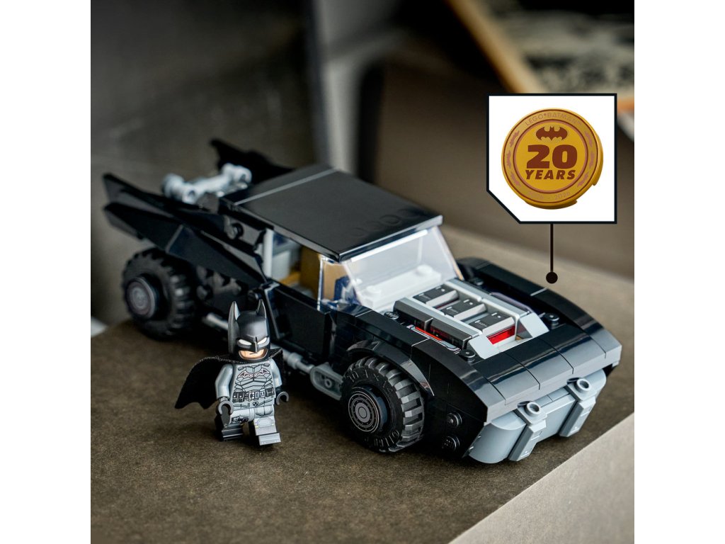 • MINIFIGURKA BATMANA – Součástí balení je minifigurka superhrdiny LEGO® s látkovým pláštěm a pamětní zlatou mincí zabudovanou pod odnímatelnou kapotu modelu Batmobilu