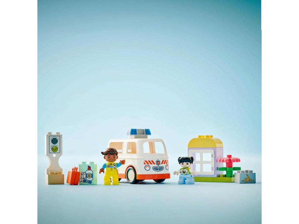 Tato kreativní hračka LEGO DUPLO představuje skvělý dárek pro malé děti, které mají rády hry na rozvoj sociálních a emočních dovedností, a pomůže jim prohlubovat empatii. Součástí návodu na stavění je tištěné herní kolečko, se kterým rodiče a děti prozkoumají různé emoce postavičky holčičky. Děti s jeho pomocí vyjádří své pocity při tom, když se někdo necítí dobře, nebo jak se cítily, když poprvé viděly sanitku. Stavebnice také pomáhá rozvíjet logické myšlení při sestavování sledu událostí a jemné motorické dovednosti při otevírání střechy sanitky, přes kterou umístí figurku na sklápěcí lůžko. Tato vzdělávací hračka také pomáhá malým dětem rozvíjet sociální dovednosti při rozhodování, jak bude řidič sanitky zacházet s pacientkou.