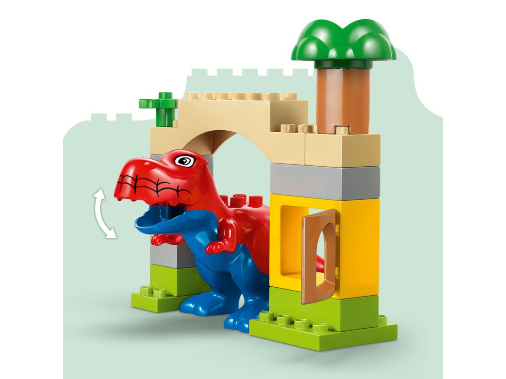 • CELÁ ŘADA FUNKCÍ – Obsahuje figurku LEGO® DUPLO® Spidey-Rexe s otevírací a zavírací tlamou, figurku Zeleného goblina na létajícím vozidle s vodním dělem, pokladnici a oblouk