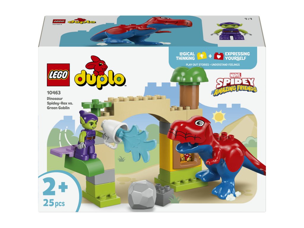 • SUPERHRDINSKÁ HRAČKA – Batolata od 2 let si užijí hodiny kreativního hraní se svým oblíbeným pavoučím hrdinou v podobě T-Rexe ze stavebnice Dinosaurus Spidey-Rex vs. Zelený goblin (10463)