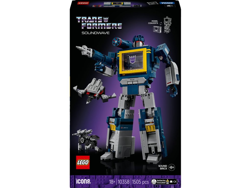 Postavte si úchvatný výstavní kousek nebo překvapte své blízké stavebnicí LEGO® Icons (10358) Transformers: Soundwave, která je určena pro dospělé fanoušky této velkolepé sci-fi filmové série a poslouží jako ozdoba bytu i kanceláře. Poskládejte si propracovanou repliku LEGO milované akční figurky Decepticona spolu s jeho věrnými společníky Ravagem a Laserbeakem.