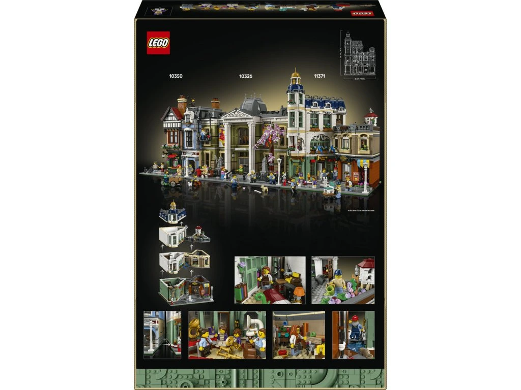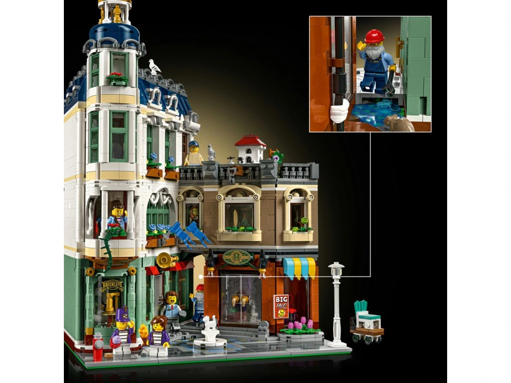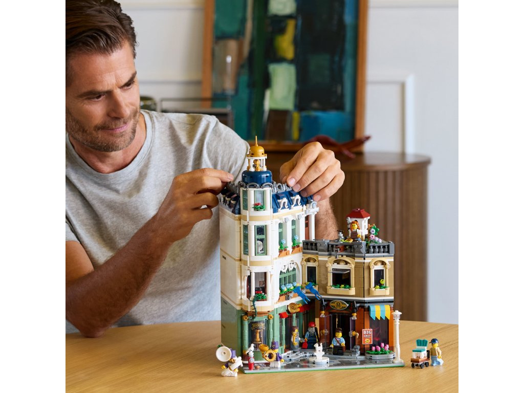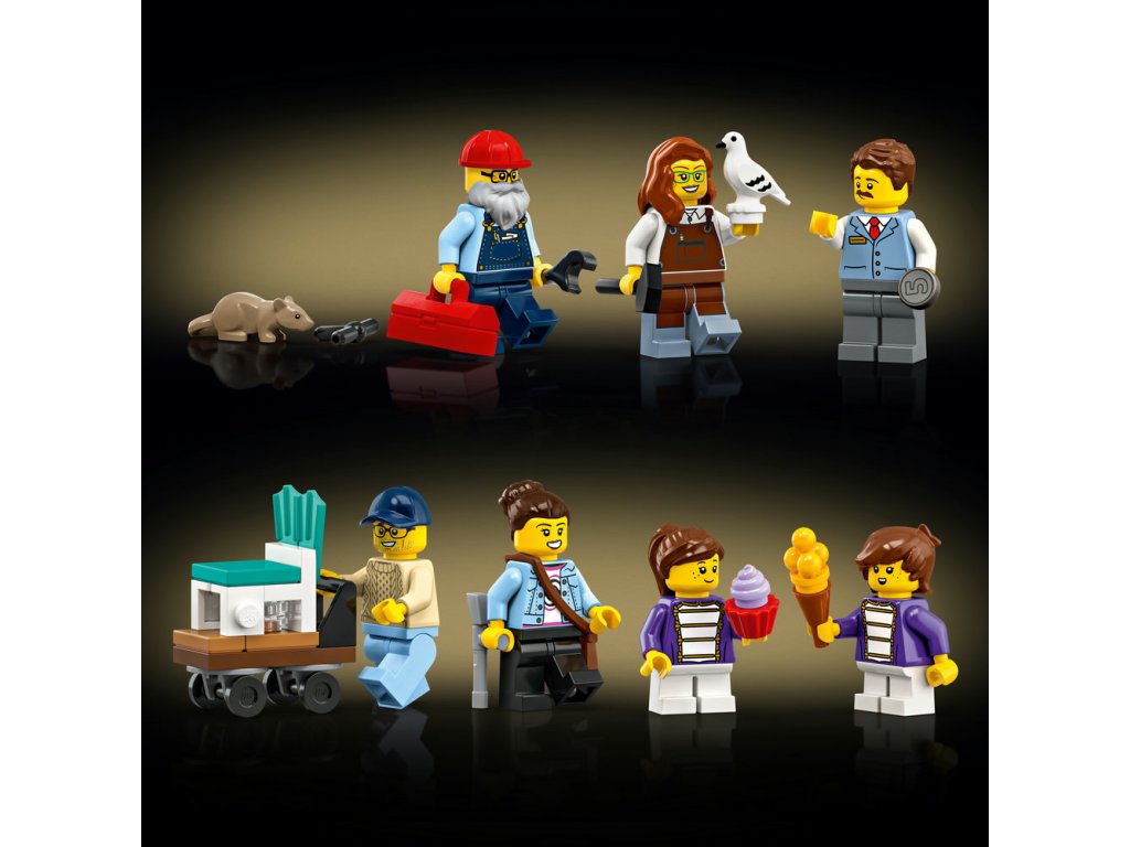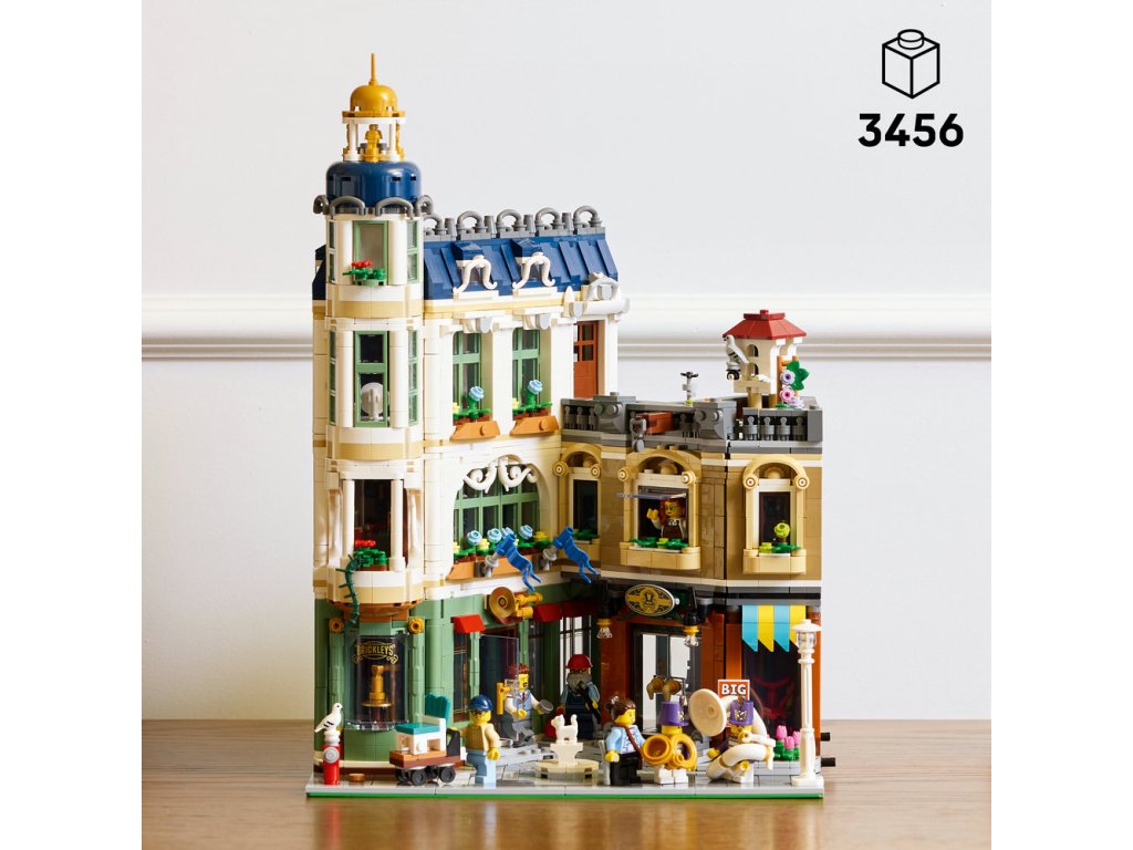 • PROPRACOVANÁ SBĚRATELSKÁ STAVEBNICE LEGO® – Obsahuje obchod s hudebními nástroji pro pochodovou kapelu, krámek s nábytkem, zařízený byt, střešní zahradu a centrální uličku