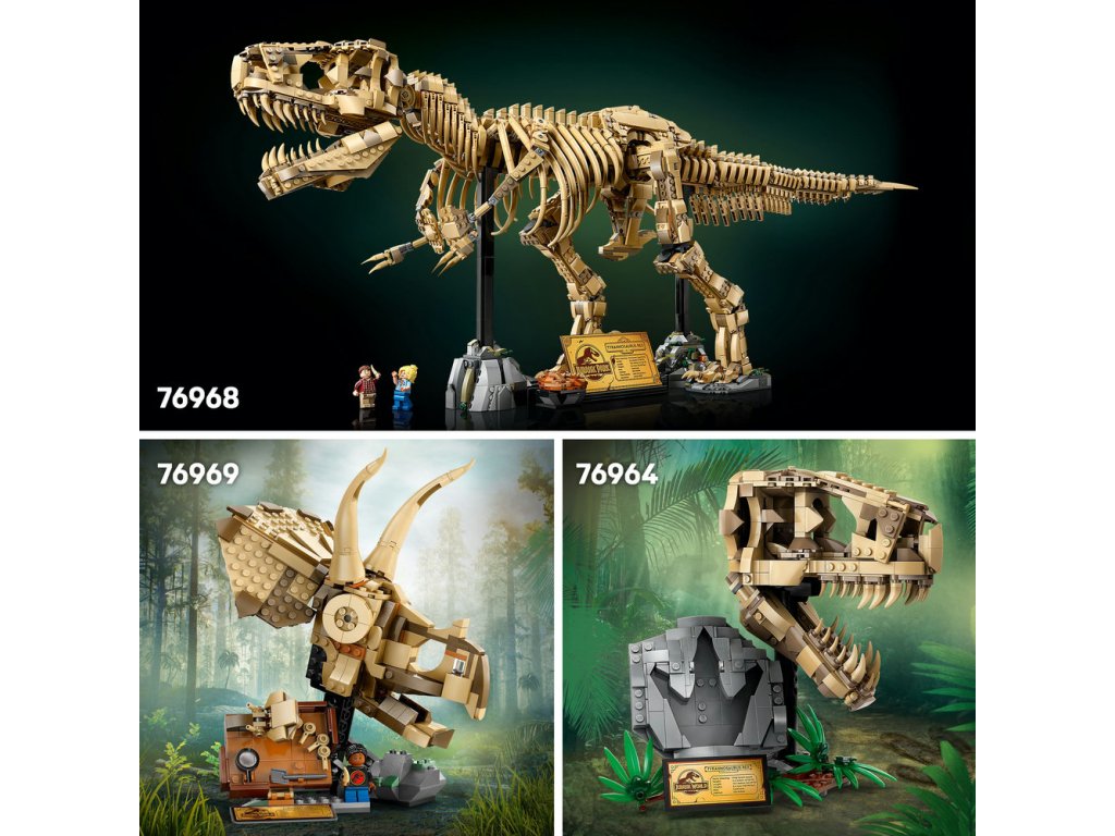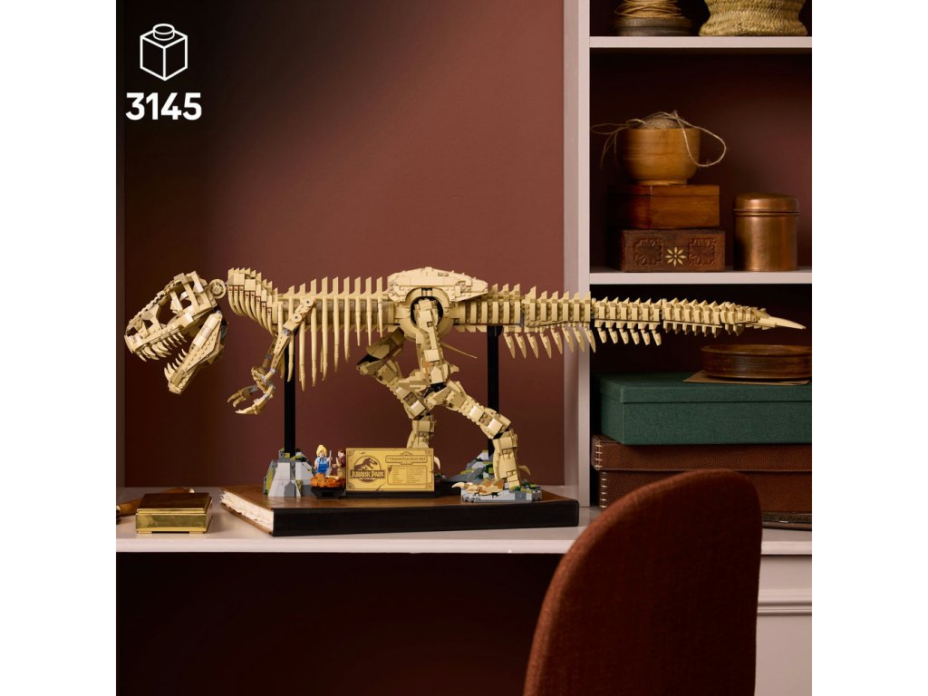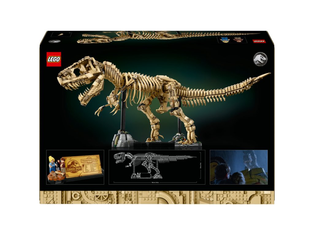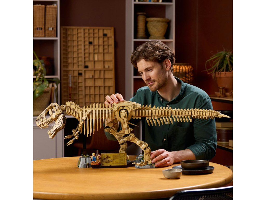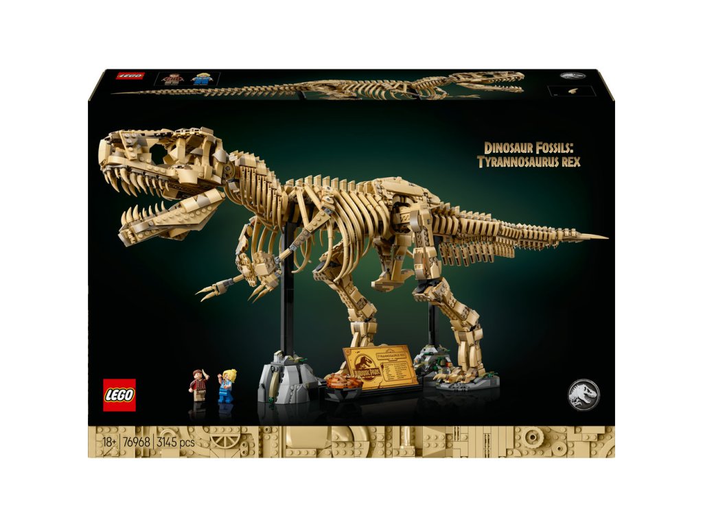 Ukažte světu svou lásku k dinosaurům s působivou výstavní stavebnicí Dinosauří fosilie: Tyrannosaurus rex (76968). Tento sběratelský model dinosaura LEGO® Jurassic World obsahuje fosilní kostru T-rexe v měřítku 1:12 s pohyblivými klouby včetně lebky, čelisti, pohyblivých paží a ocasu. Součástí je také informační cedulka, kterou lze připevnit na podstavec, skryté odkazy na filmy, jako je například dílek „jantaru“, a 2 minifigurky z filmu Jurský park z roku 1993: Ellie Sattlerová a Alan Grant.