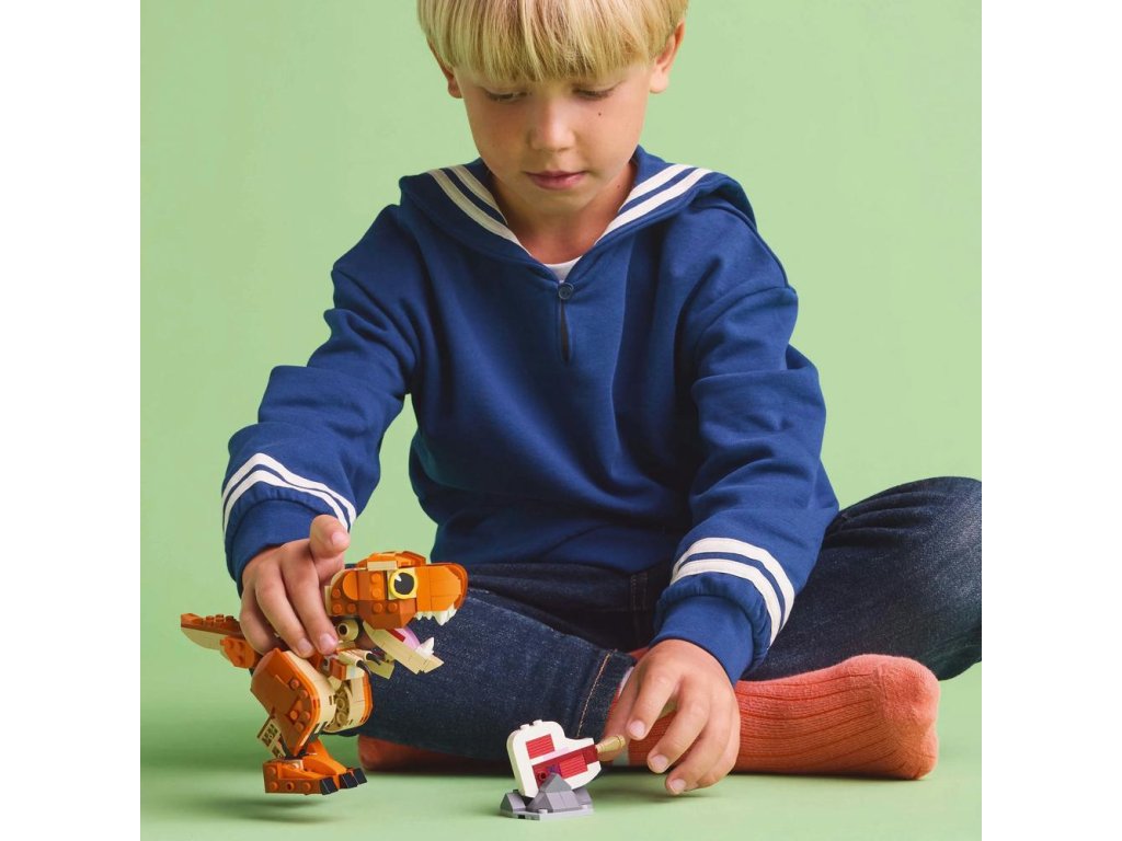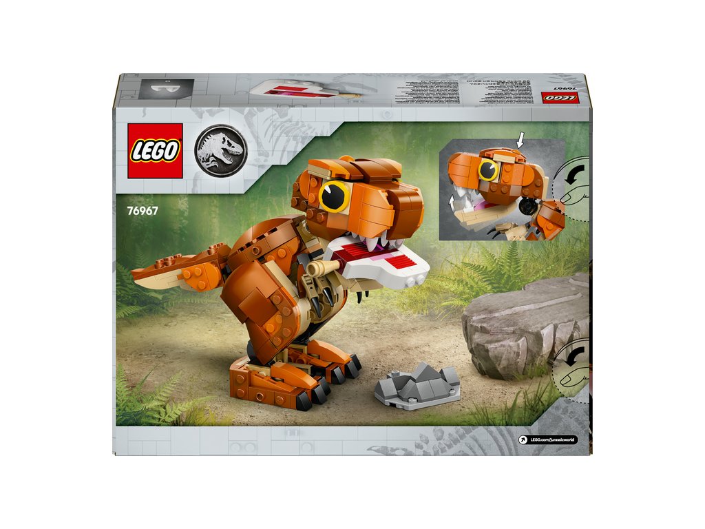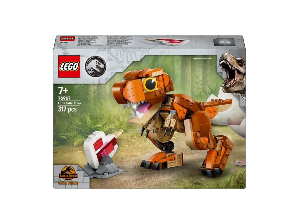 Se stavebnicí LEGO® Jurassic World (76967)) Malá Žravka: T-rex si děti od 7 let užijí hodiny napínavých dobrodružství, hraní a péče o dinosaura. Stavebnice nabízí spoustu možností hraní i vystavení. Malí krotitelé dinosaurů si poskládají model LEGO dinosaura a pak se pustí do objevování pravěkého světa s Malou Žravkou ze seriálu Jurský svět: Křídový kemp. Stavebnice inspirovaná seriálem Jurský svět: Teorie chaosu obsahuje figurku T-rexe z kostek s interaktivní žvýkací čelistí a pohyblivým ocasem a končetinami, které umožňují vytvářet různé pózy. Až si děti dohrají, model dinosaura si vystaví na poličce nebo třeba na stole.