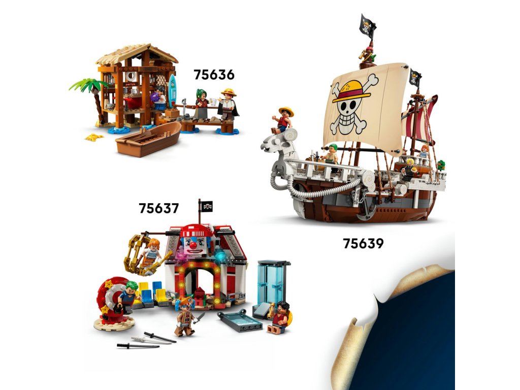 • Obsahuje minifigurky Luffyho, Nami, Usoppa, Arlonga a Chua