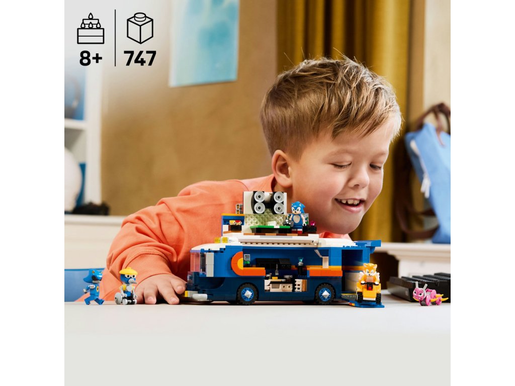 Potěšte milovníky akce a videoher od 8 let stavebnicí Velitelské vozidlo týmu Sonic (77006). Tato zábavná stavebnice z řady LEGO® Sonic the Hedgehog™ obsahuje úžasný model vozidla s otevírací stranou, odnímatelnou kabinou, vystřelovačem a místností s funkcí vystřelování čtyřkolky. Tato stavebnice představuje skvělý dárek a obsahuje 5 figurek – Sonica, Tailse, Metal Sonica, Burrobota a Caterkillera. Tuto hračku Sonic pro kluky a holky od 8 let budou obdivovat všichni spolužáci. Děti se s ní můžou hned ponořit do nekonečného akčního hraní na hrdiny a padouchy. Dopřejte dětem a milovníkům videoherního merche tvořivou zábavu se stavebnicemi z řady LEGO Sonic the Hedgehog (prodávají se samostatně). Děti se můžou těšit na intuitivní stavitelské dobrodružství s aplikací LEGO Builder. V ní si lze přibližovat a otáčet modely ve 3D, ukládat stavebnice a sledovat postup. Stavebnice obsahuje 747 dílků.