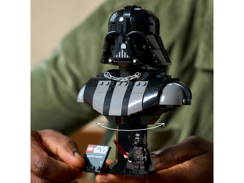 • URČENO K VYSTAVENÍ – Umístěte své dílo na sestavitelný podstavec (se jmenovkou) vedle minifigurky LEGO® Darth Vadera a otočte bustu na podstavci, abyste si ji mohli prohlédnout ze všech úhlů.