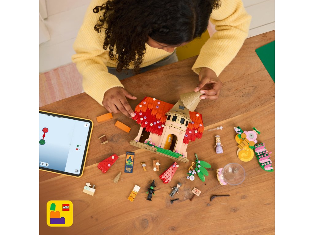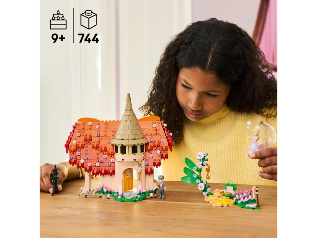 • Sestavitelné hračky na hraní i na výstavku – Tato dekorace do dětského pokoje pro holky, kluky a další fanoušky Wicked obsahuje dvoupatrovou chatu LEGO® z kostek s krásnou červenou střechou a Glindin bublinový trůn